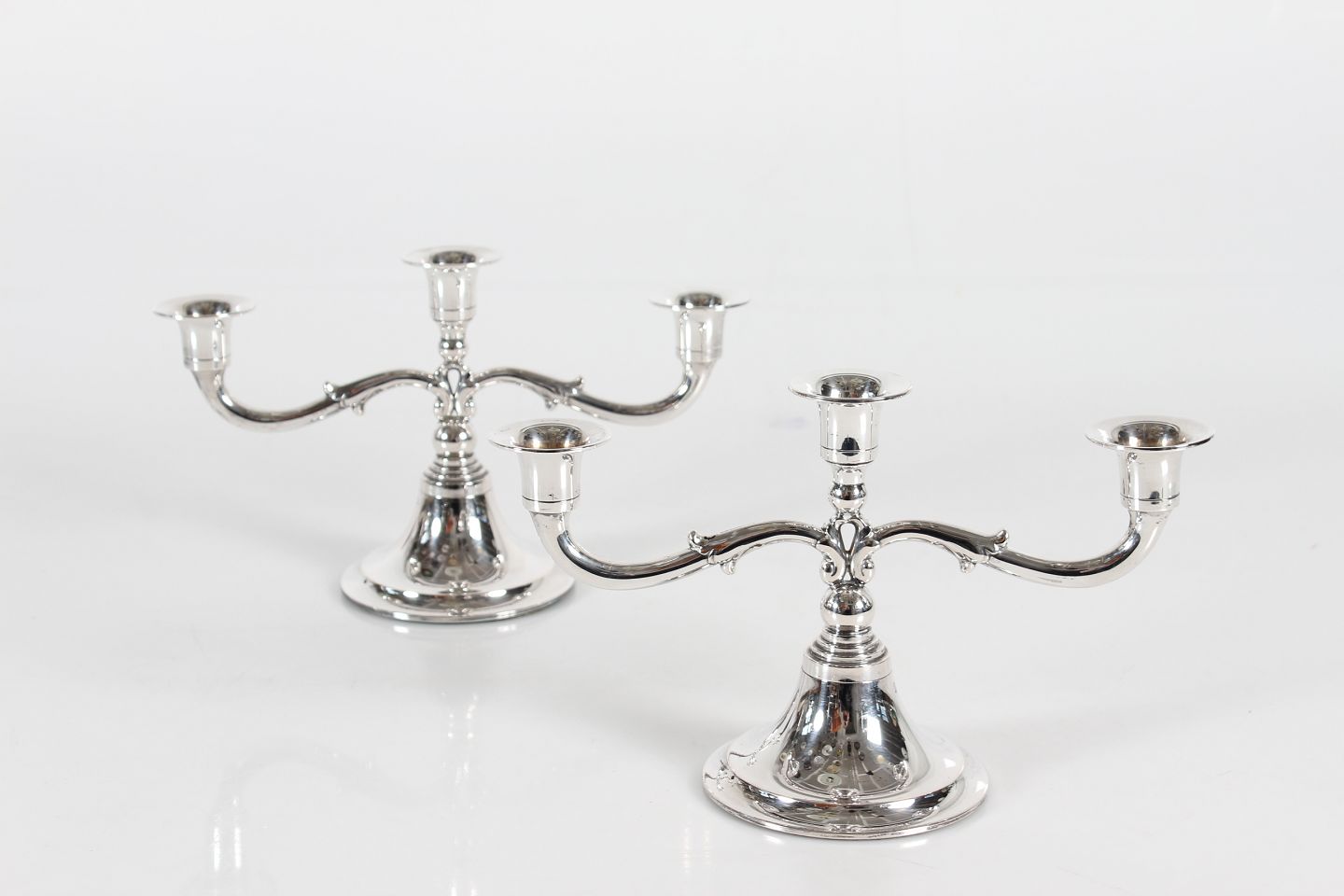 Par 3-armede sølvlysestager med udfyldte bunde