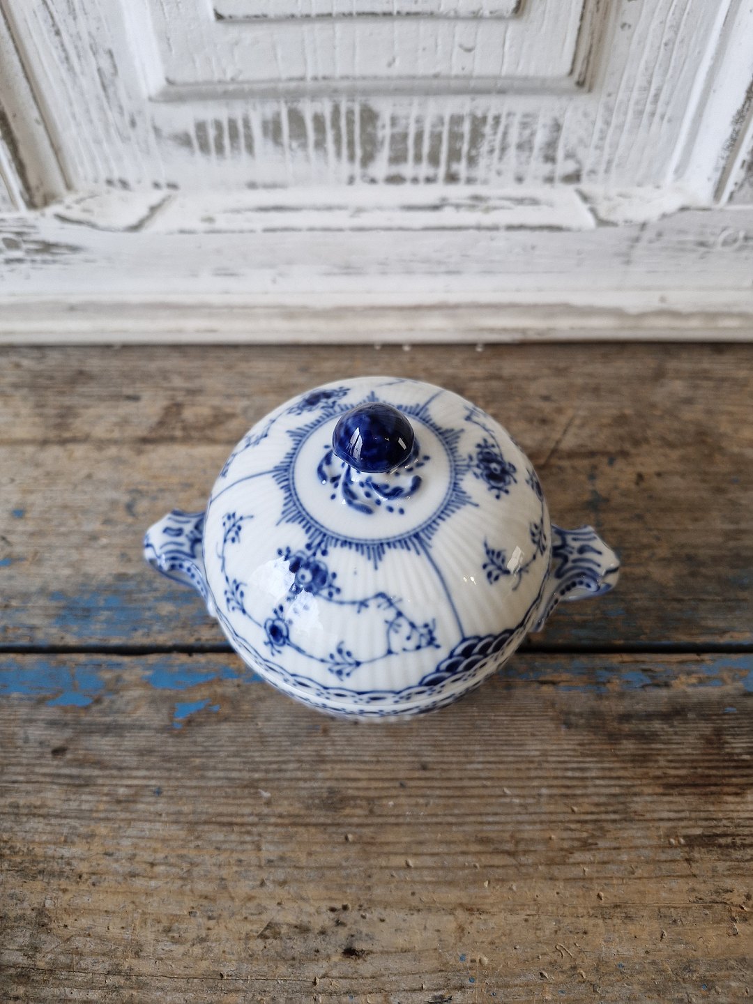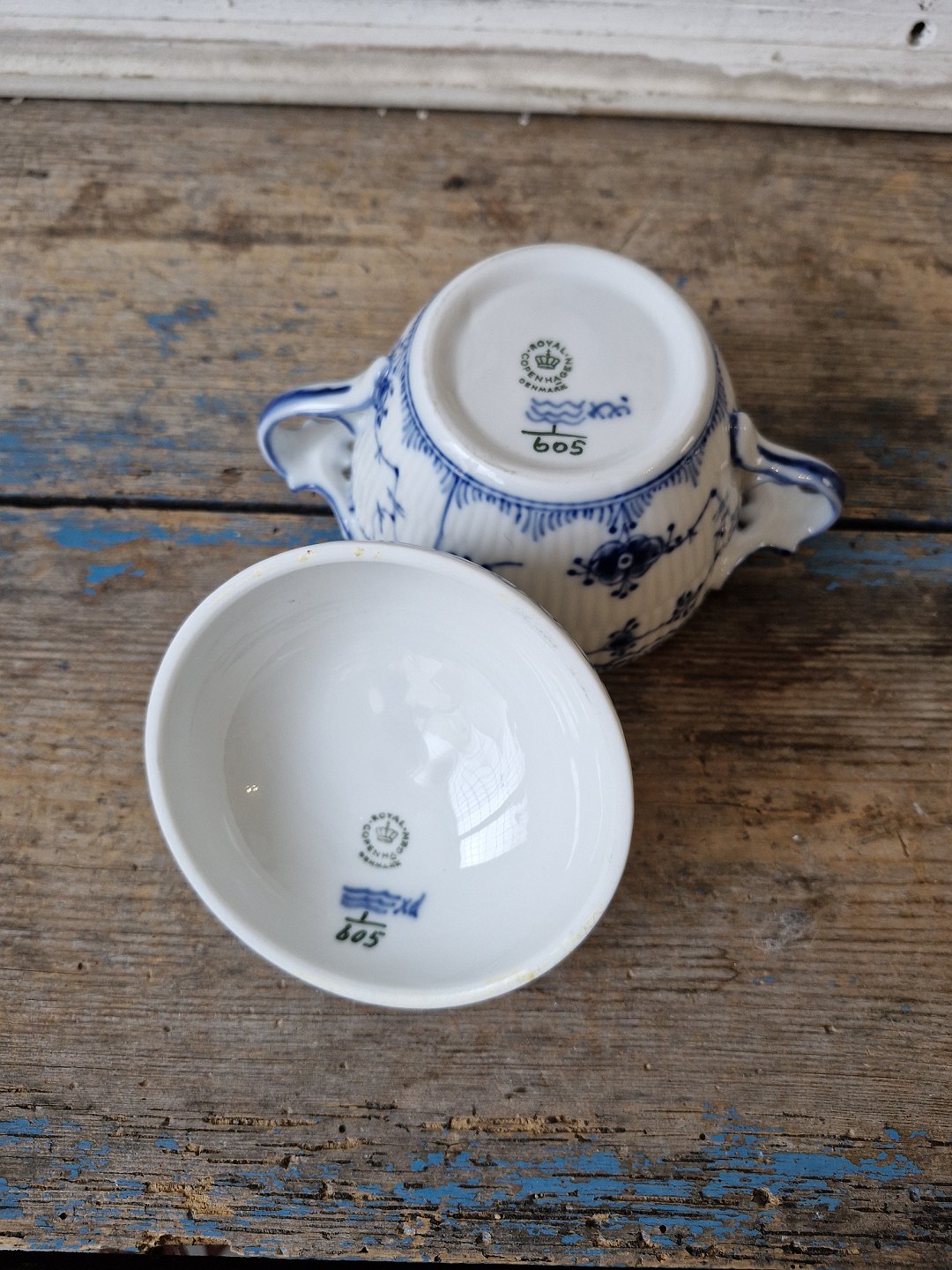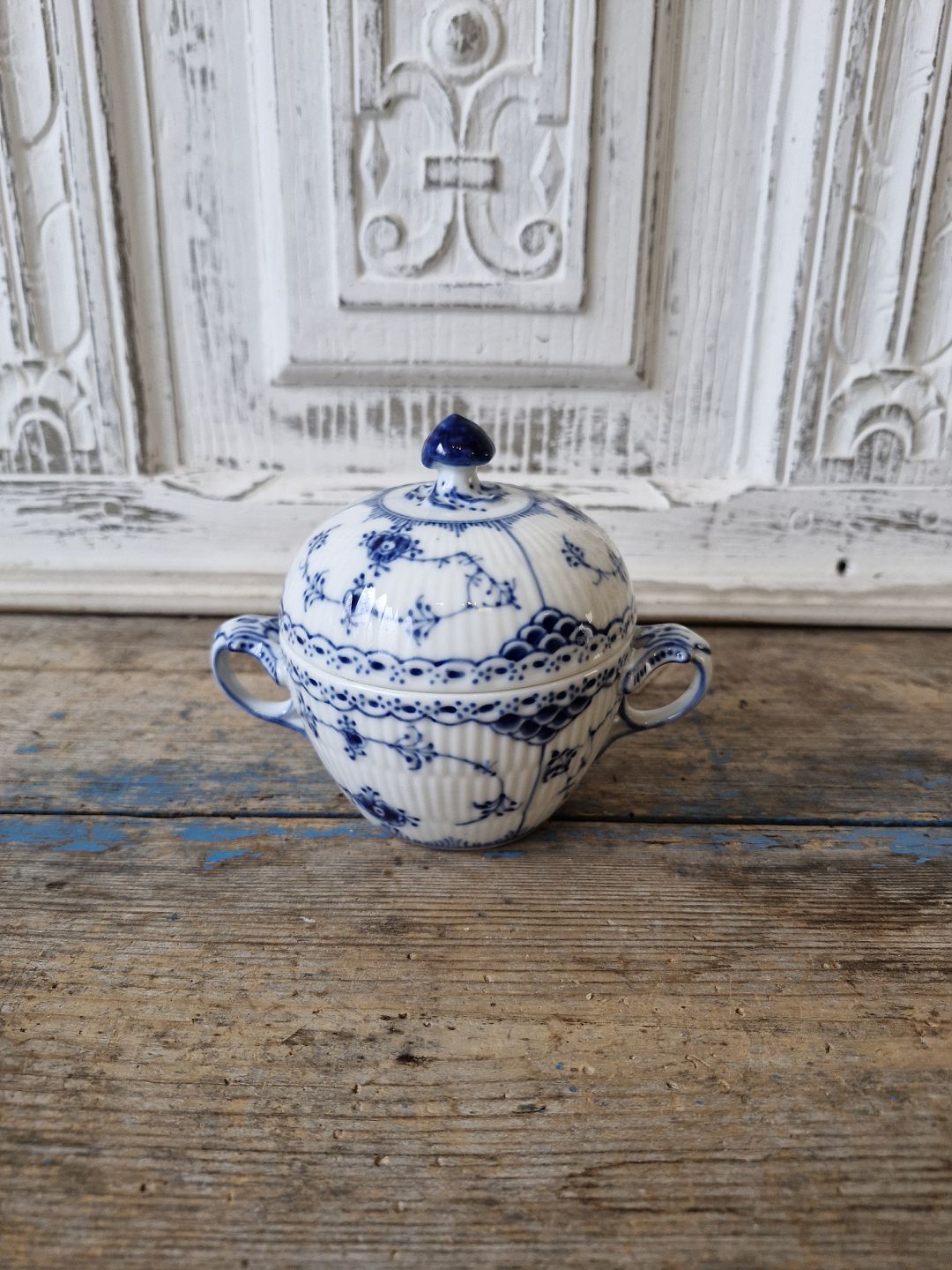 Royal Copenhagen Blue Fluted Half Lace Sugar Bowl No. 605