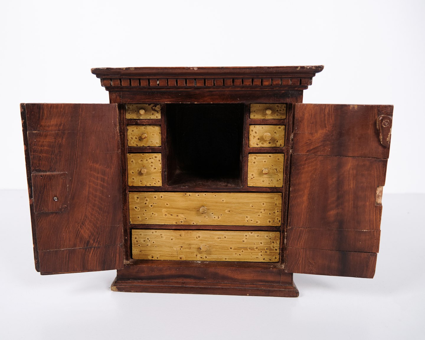 Antikt Miniature/Model Møbel i åremålet fyrretræ med Håndsmedede Beslag, År 1840erne
