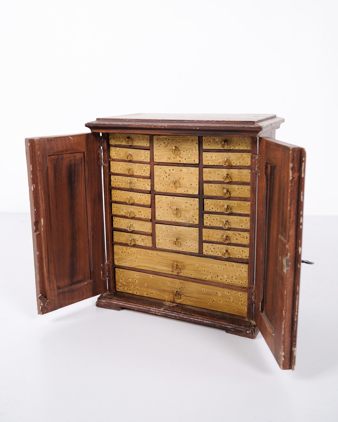 Antikt Miniature/Model Møbel i åremålet fyrretræ med Håndsmedede Beslag, År 1840erne