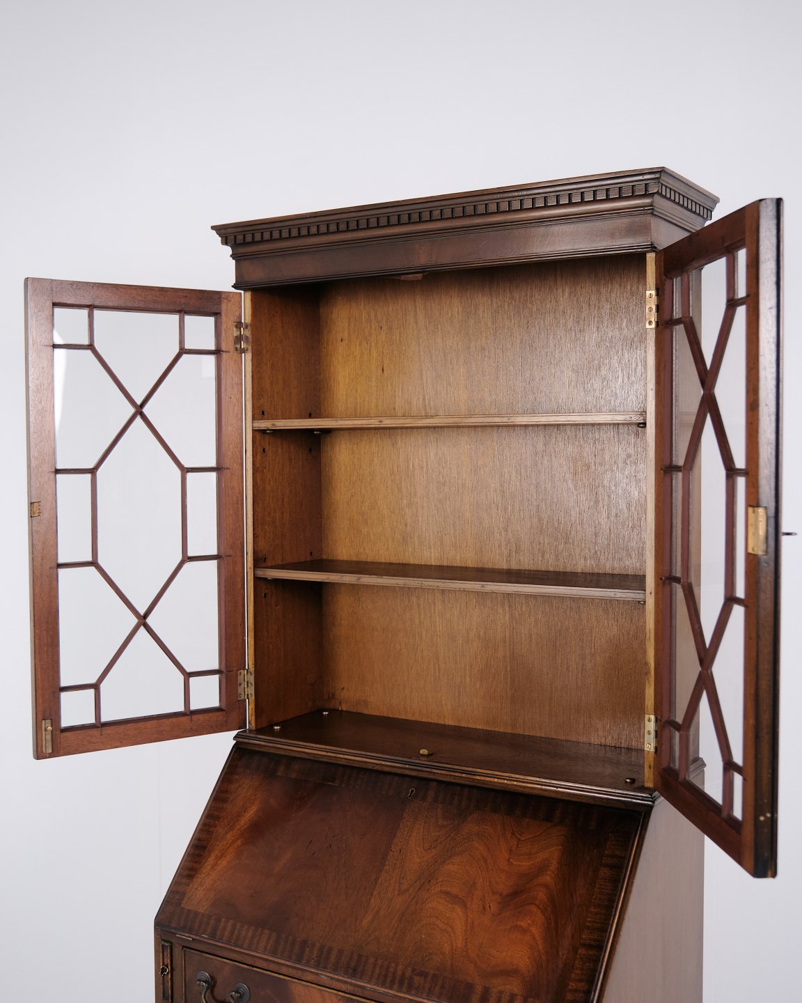 Sekretær med Skriveklap og Vitrine i Mahogni, Engelsk Stil år 1890
