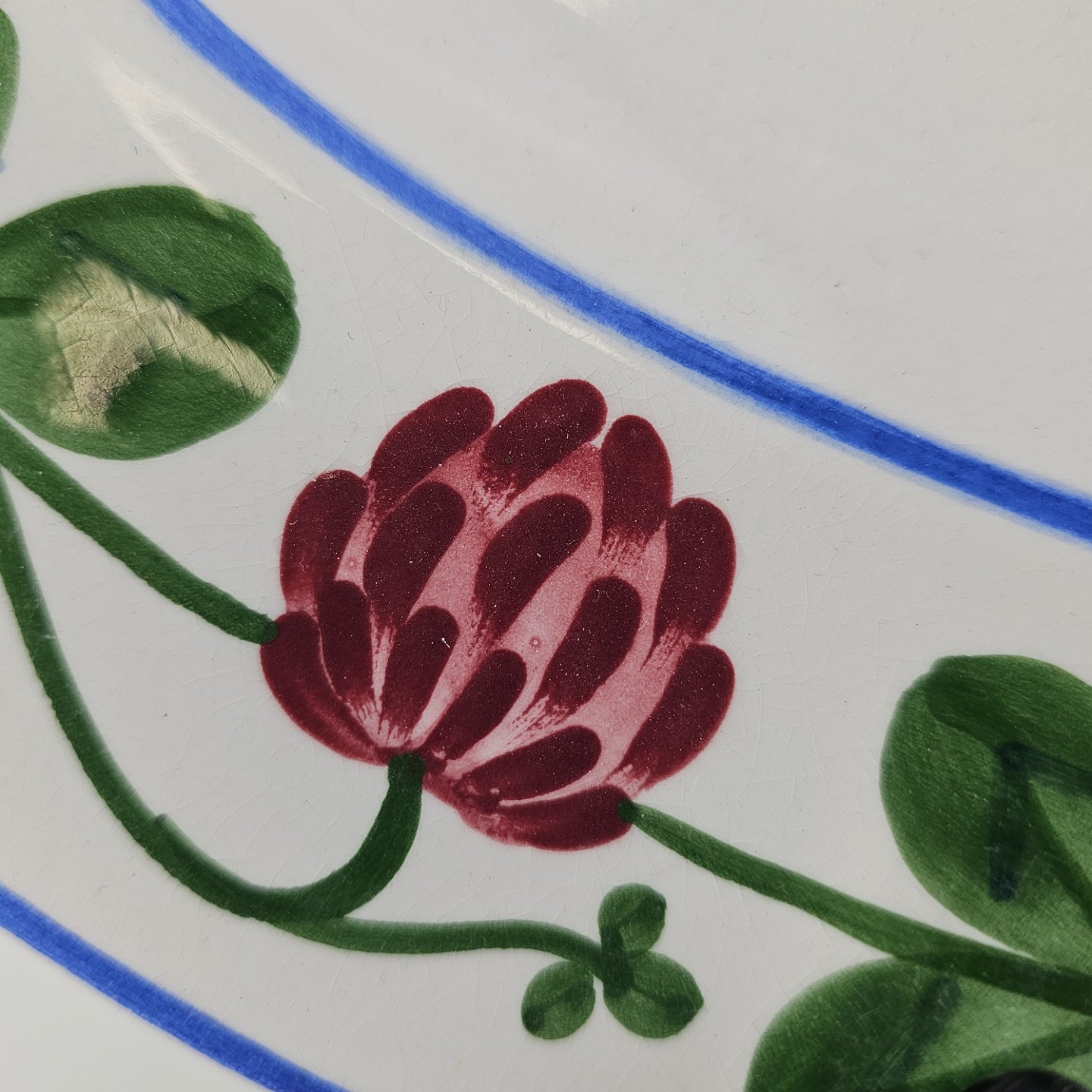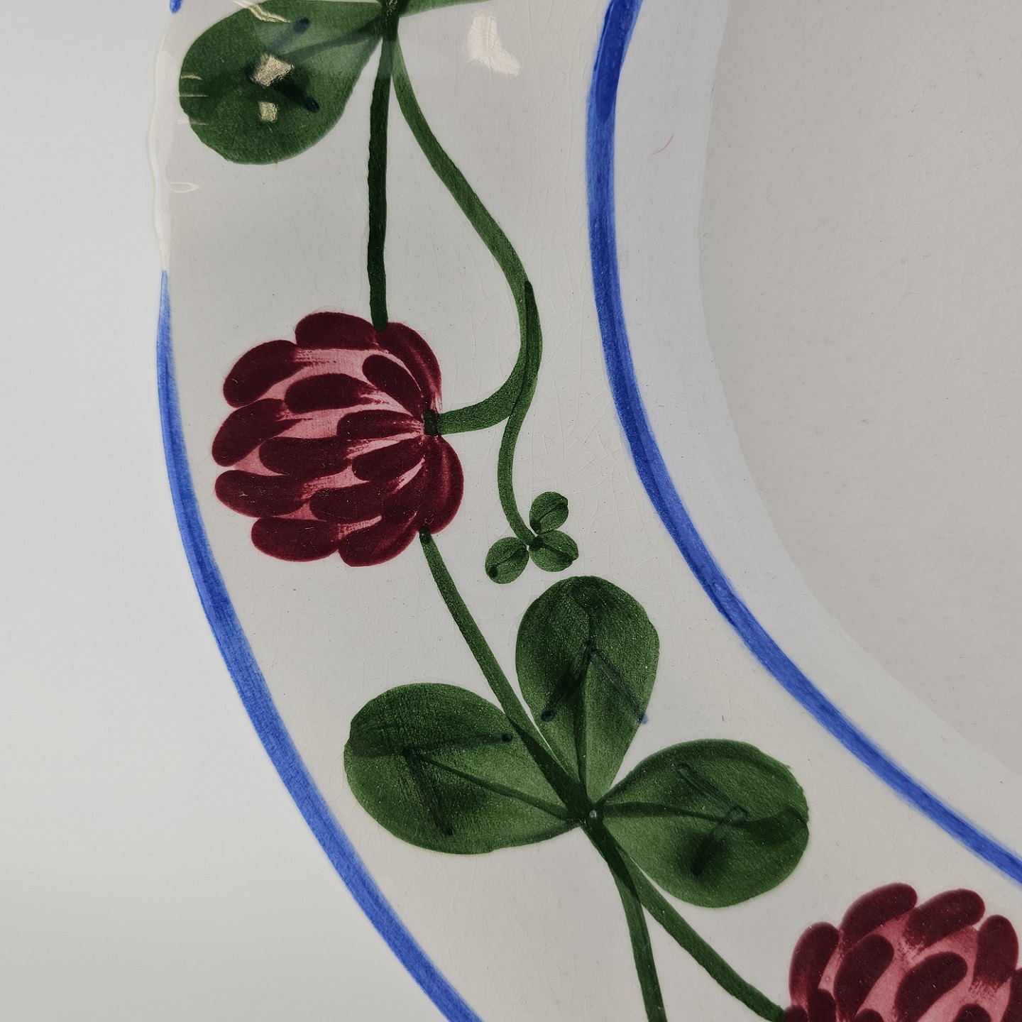 Kløver er fajancestel med motiv af rødkløver på lys baggrund.