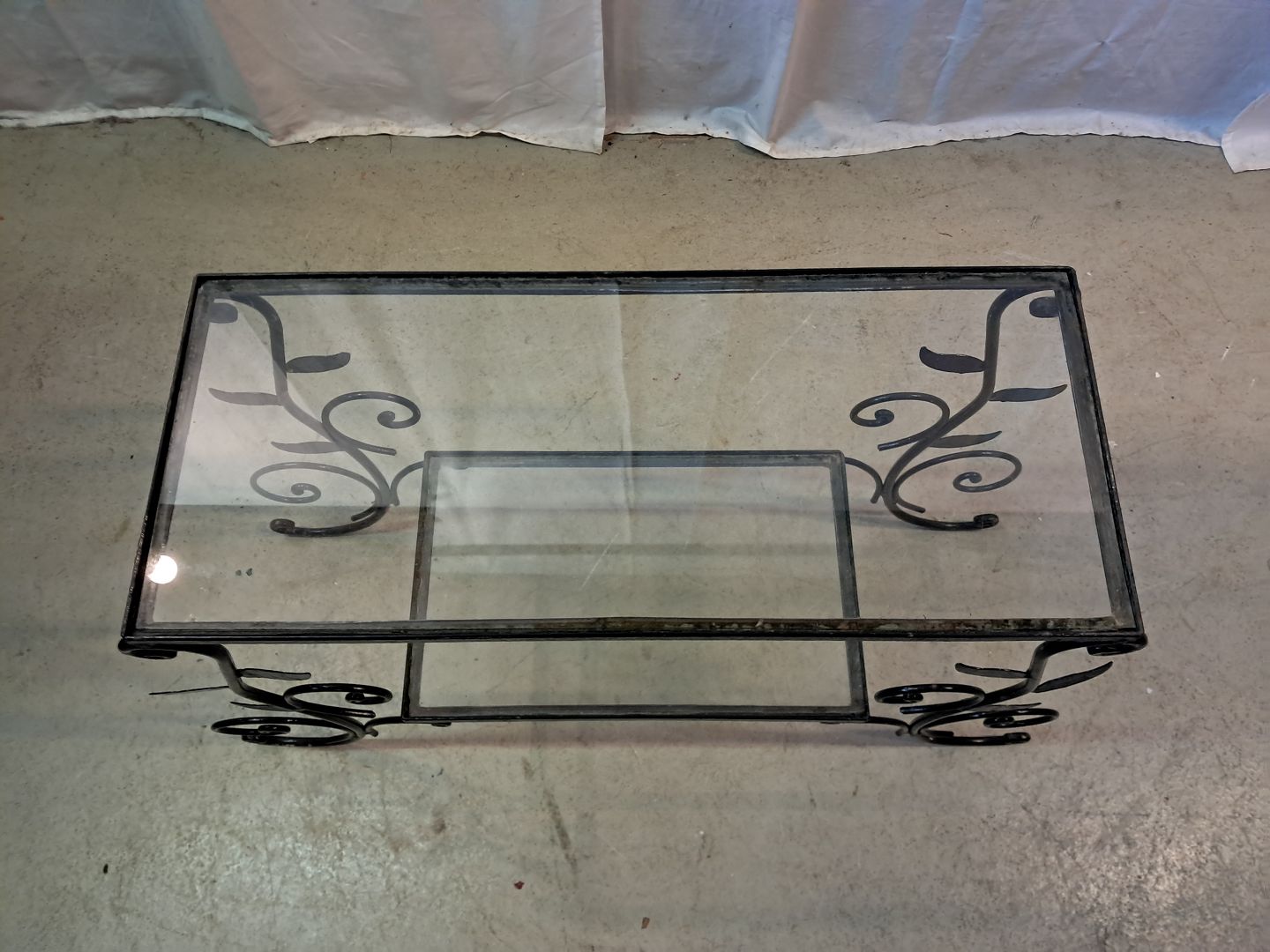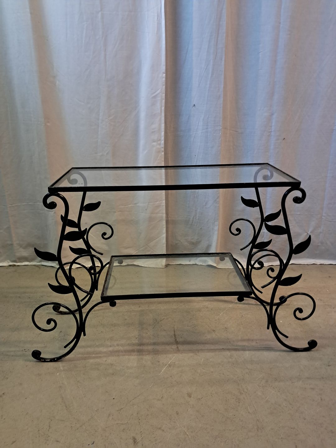 Plantebord i malet metal med glasplader, fra 1940erne.