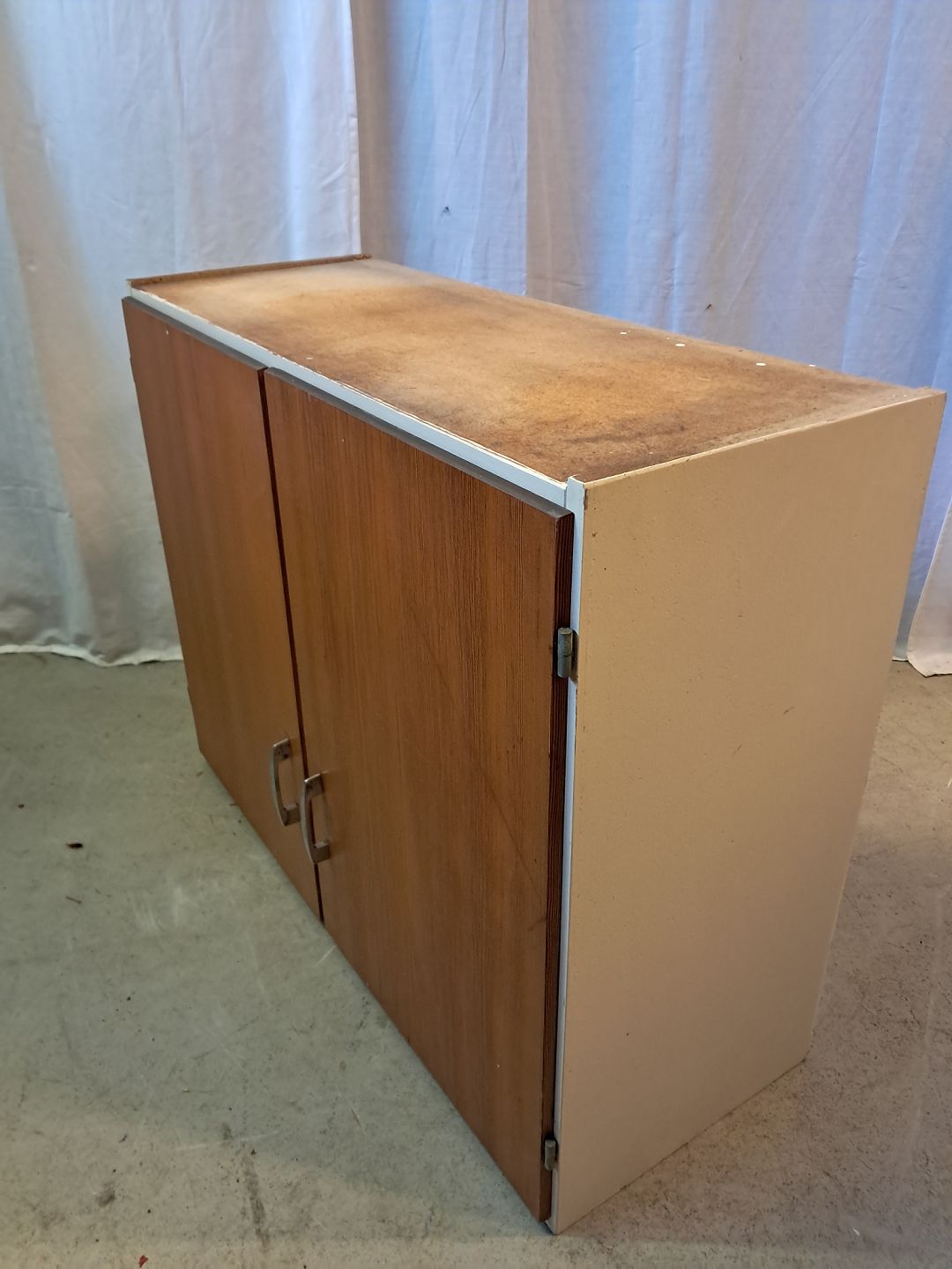 Gammelt malet køkkenskab med låger i origon pine, fra 1960erne.