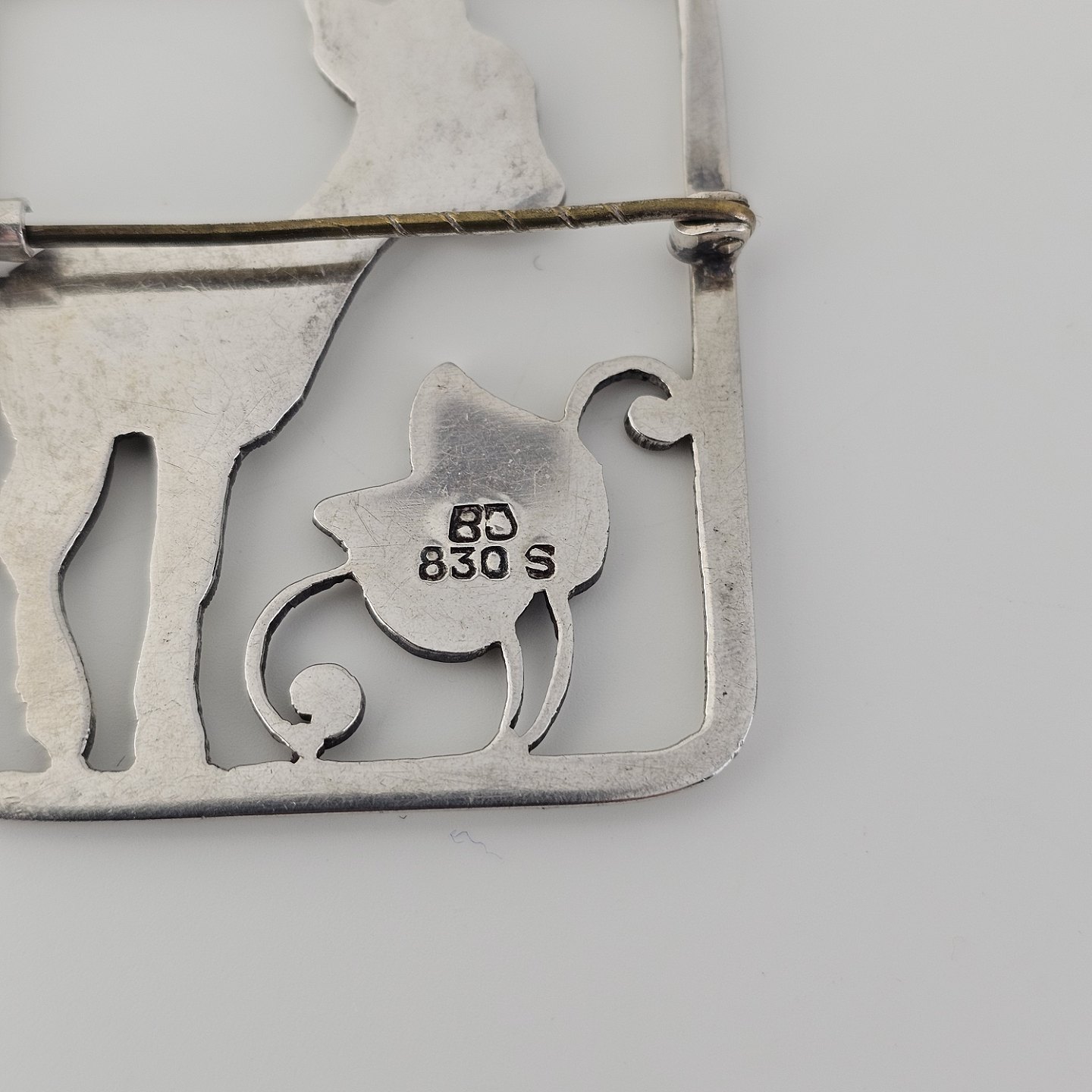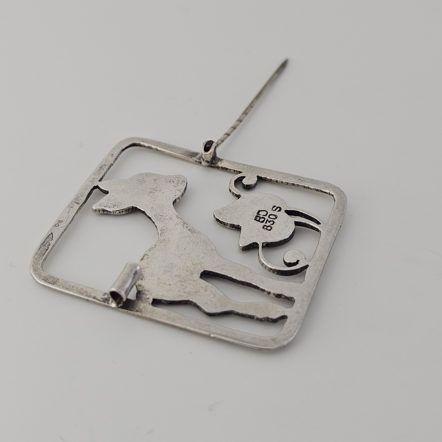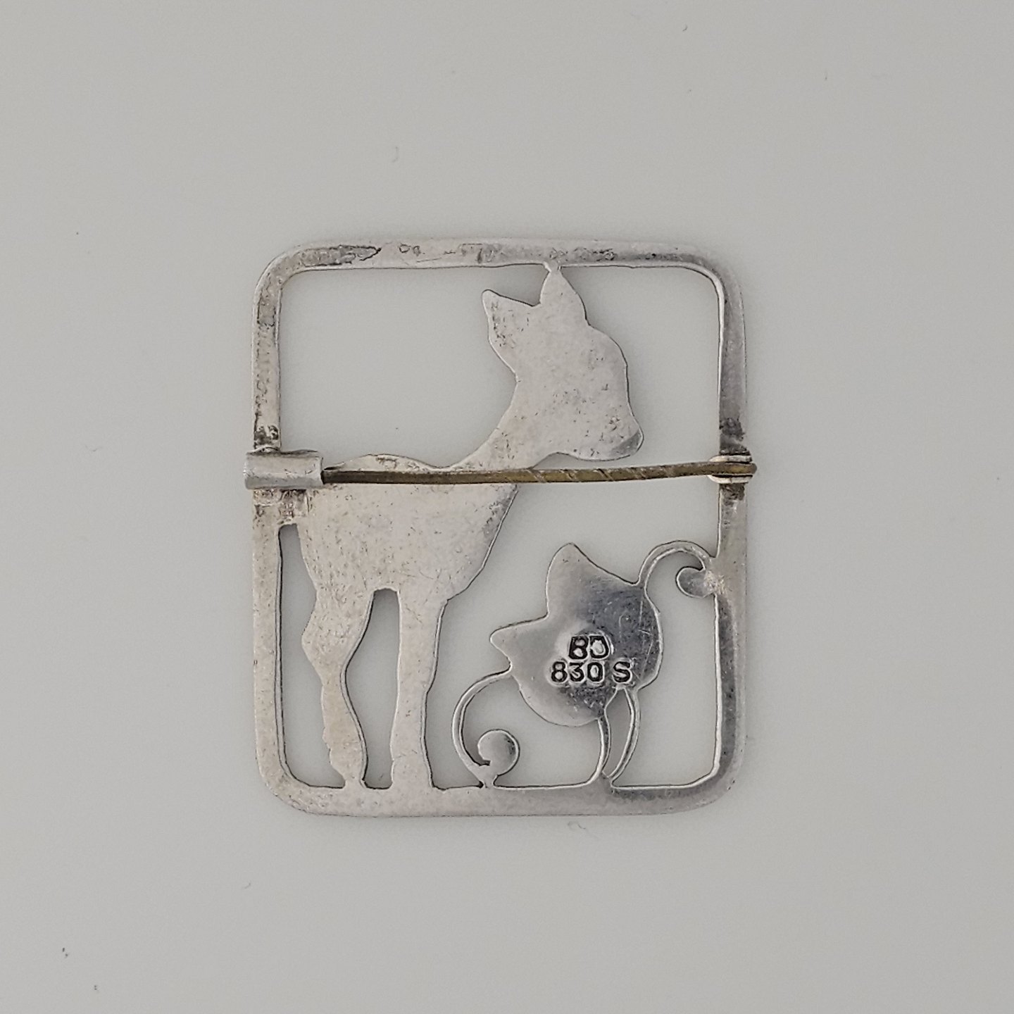 Firkantet broche i sølv med motiv af et lille rådyr