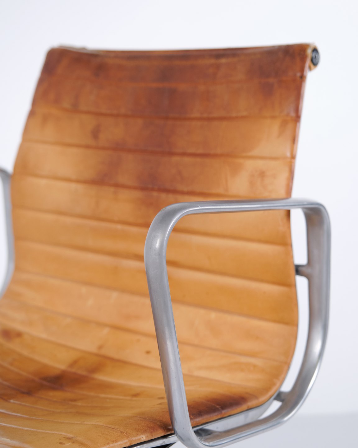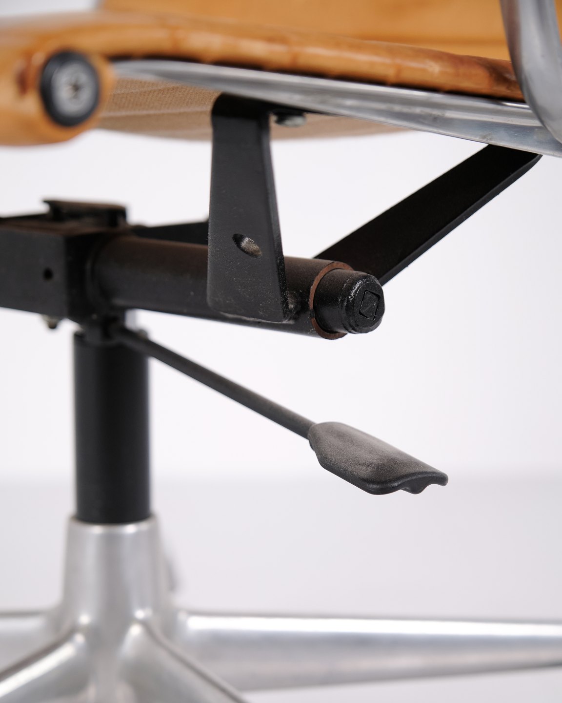 Charles Eames Kontorstol Model EA 117 i Aluminium og Cognacfarvet Læder, Vitra