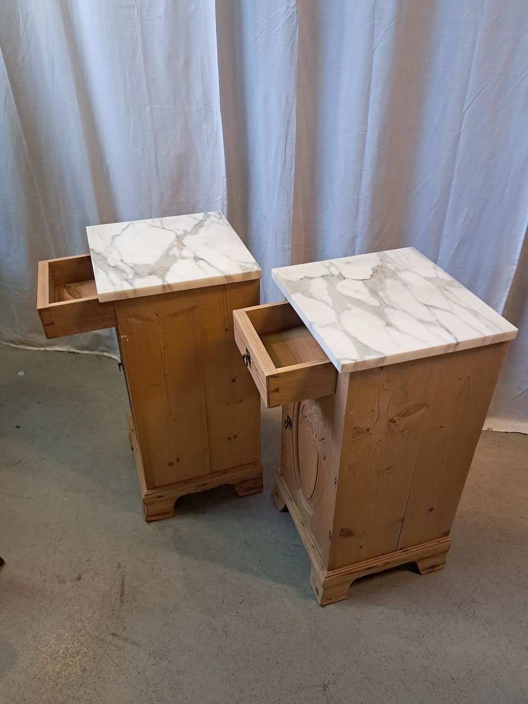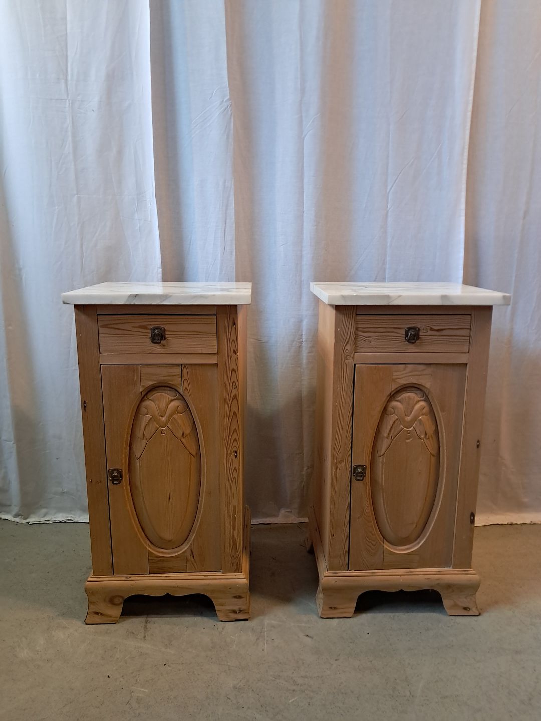 2 Natskabe i massivt fyrretræ med marmorplade, fra 1910erne.