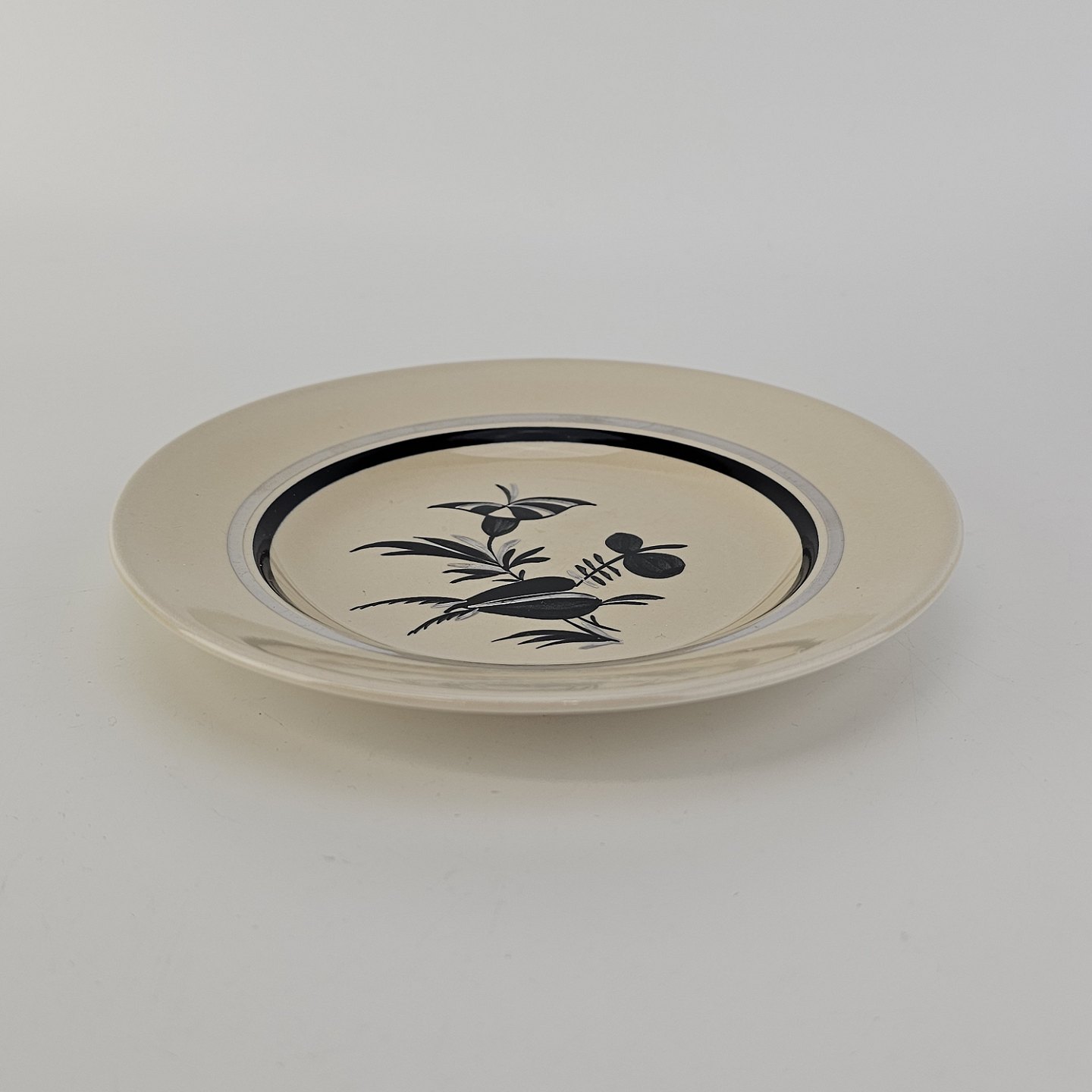 Tallerken i fajance fra stellet Dragsholm fremstillet i perioden 1934-1965.