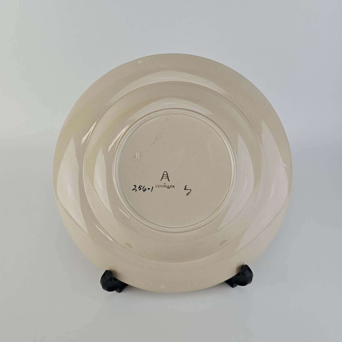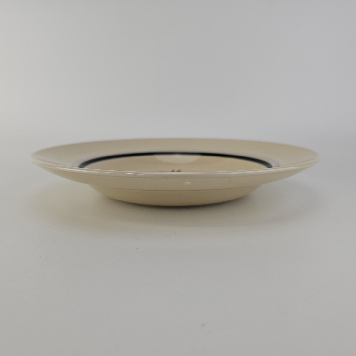 Dyb tallerken i fajance fra stellet Dragsholm fremstillet i perioden 1934-1965.