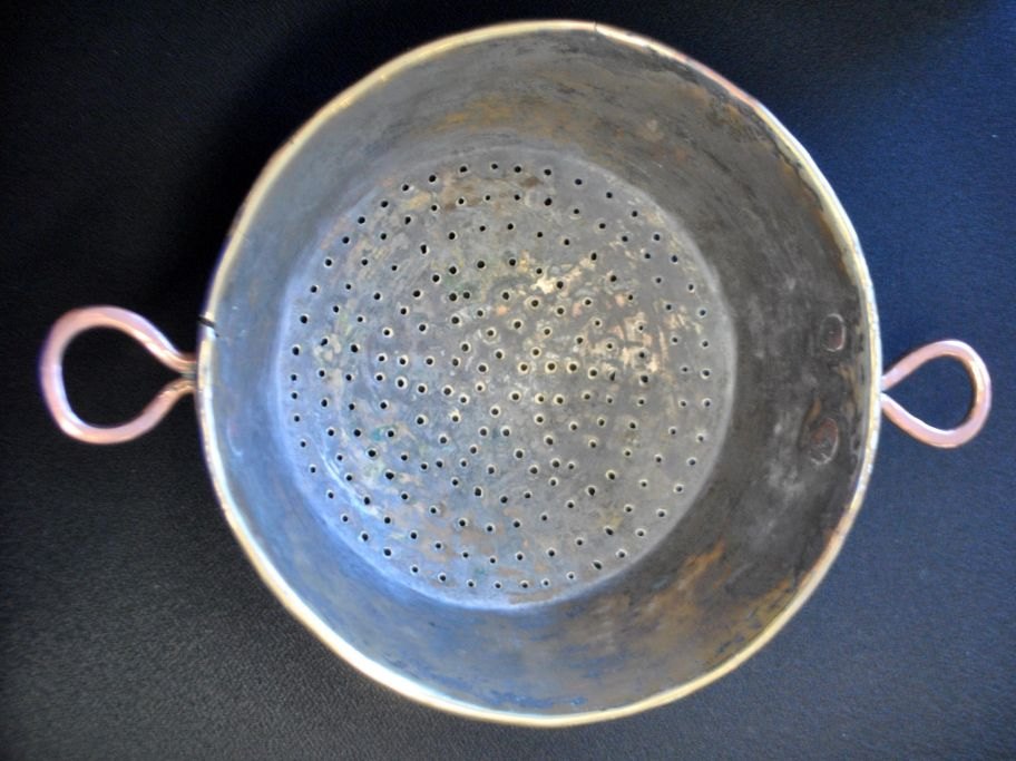Dørslag i messing, 19. årh. Danmark. Med ører af kobber. Dia: 24,5 cm.
