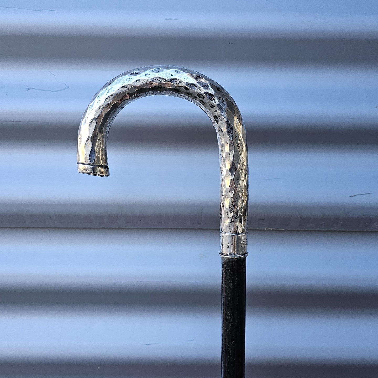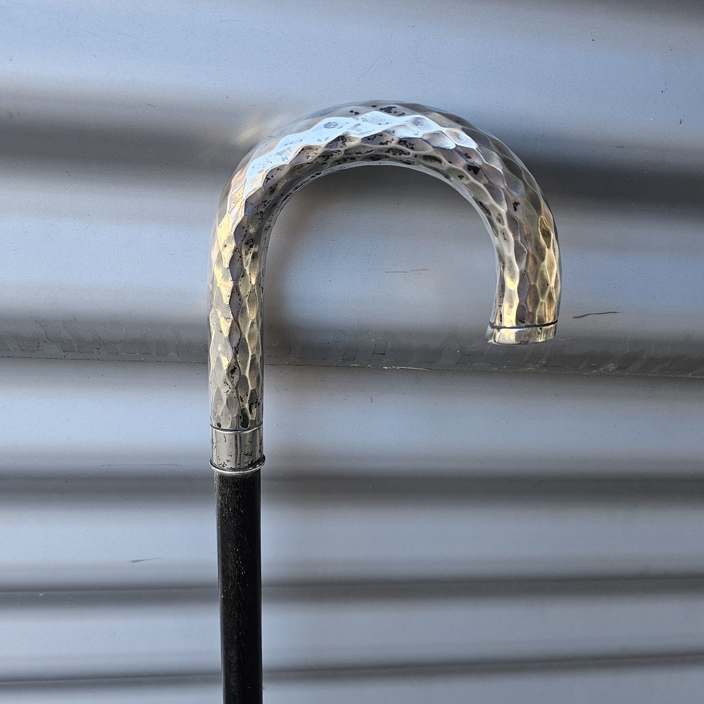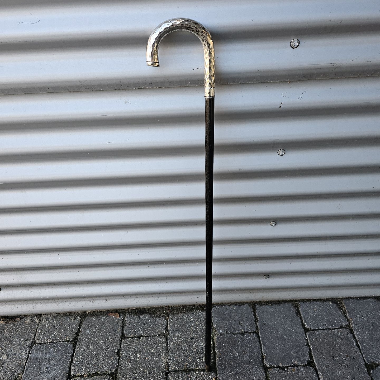 Stok i træ med buet håndtag i sølv, 830S