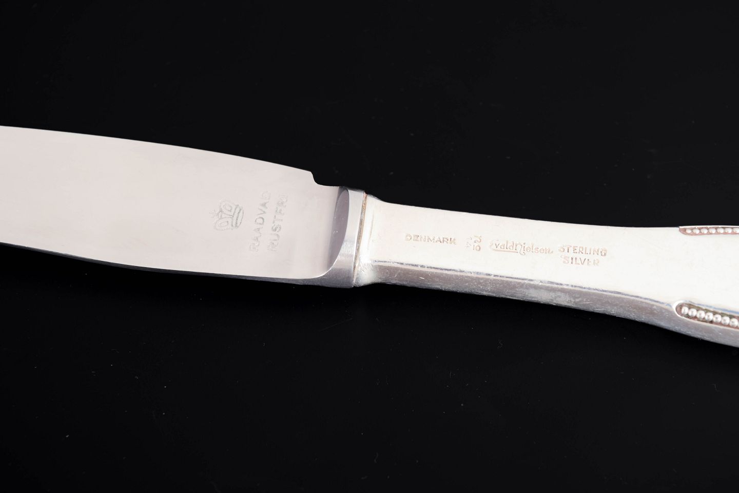 Elegante frokostknive i sterlingsølv og rustfrit stål. Model nummer 14 med klassisk, let afrundet skaftform med diskret perlekant og glat klinge. Fremstillet hos Evald Nielsen.