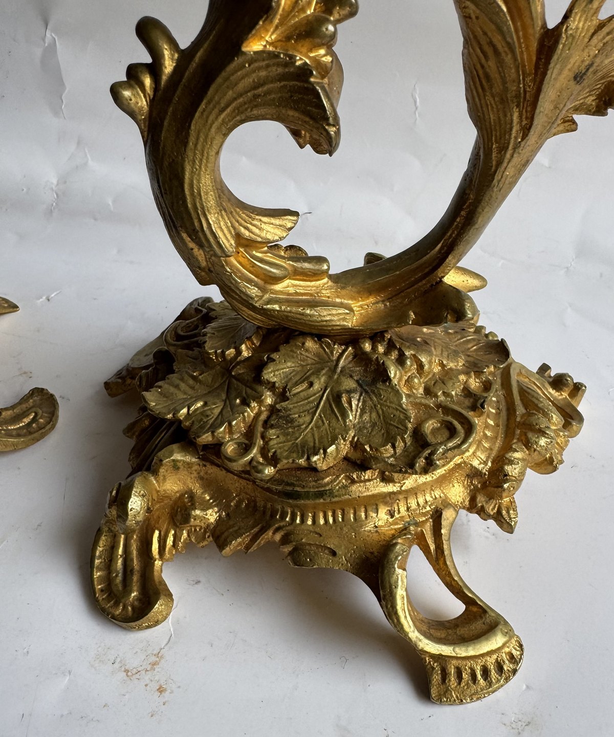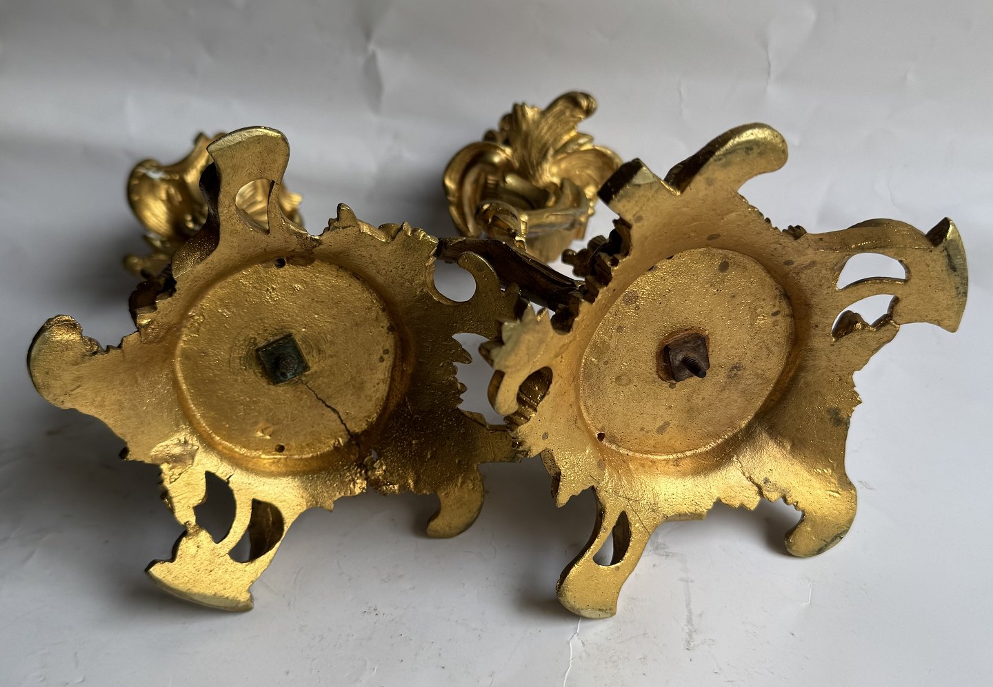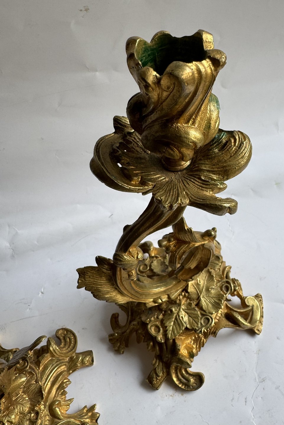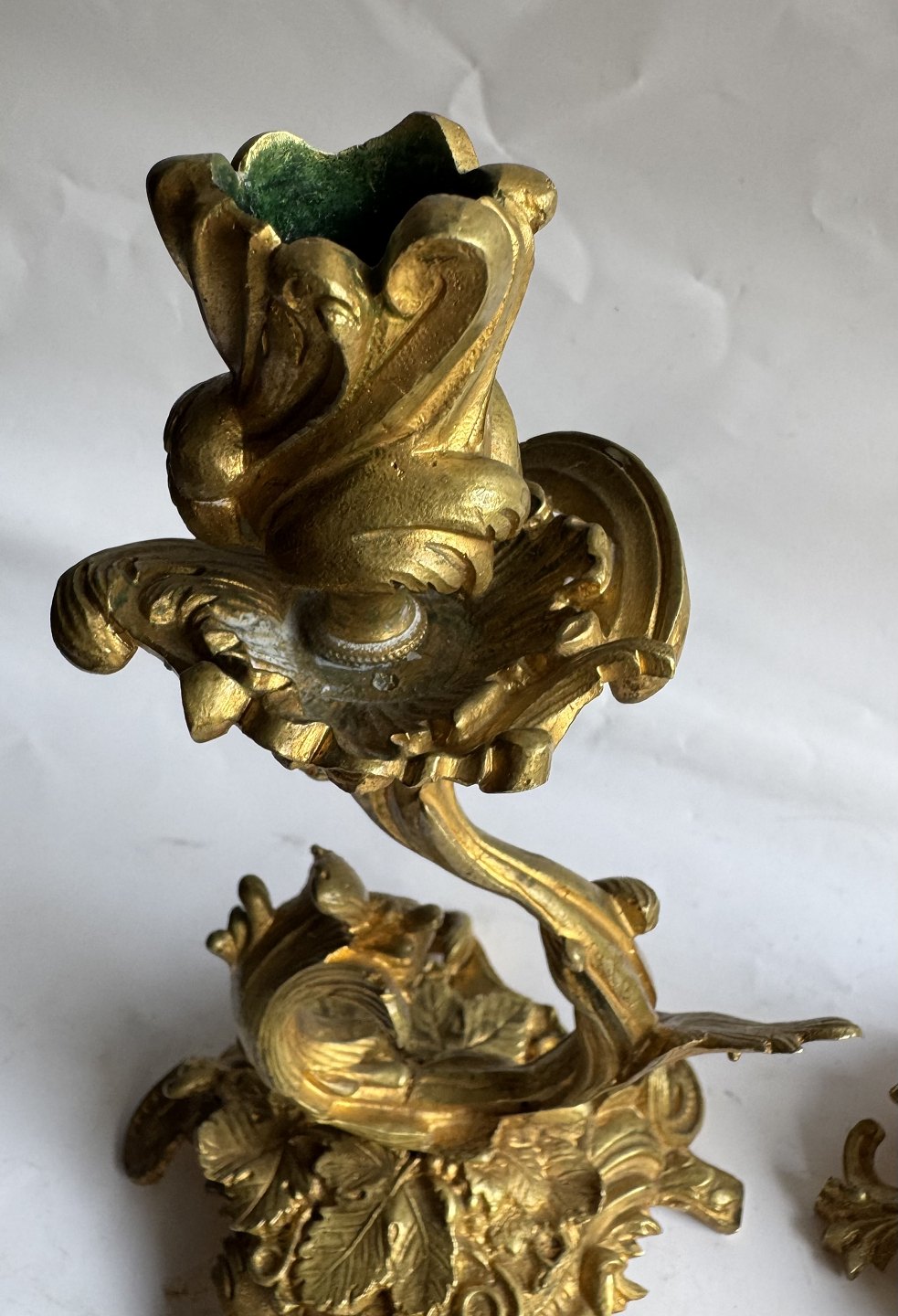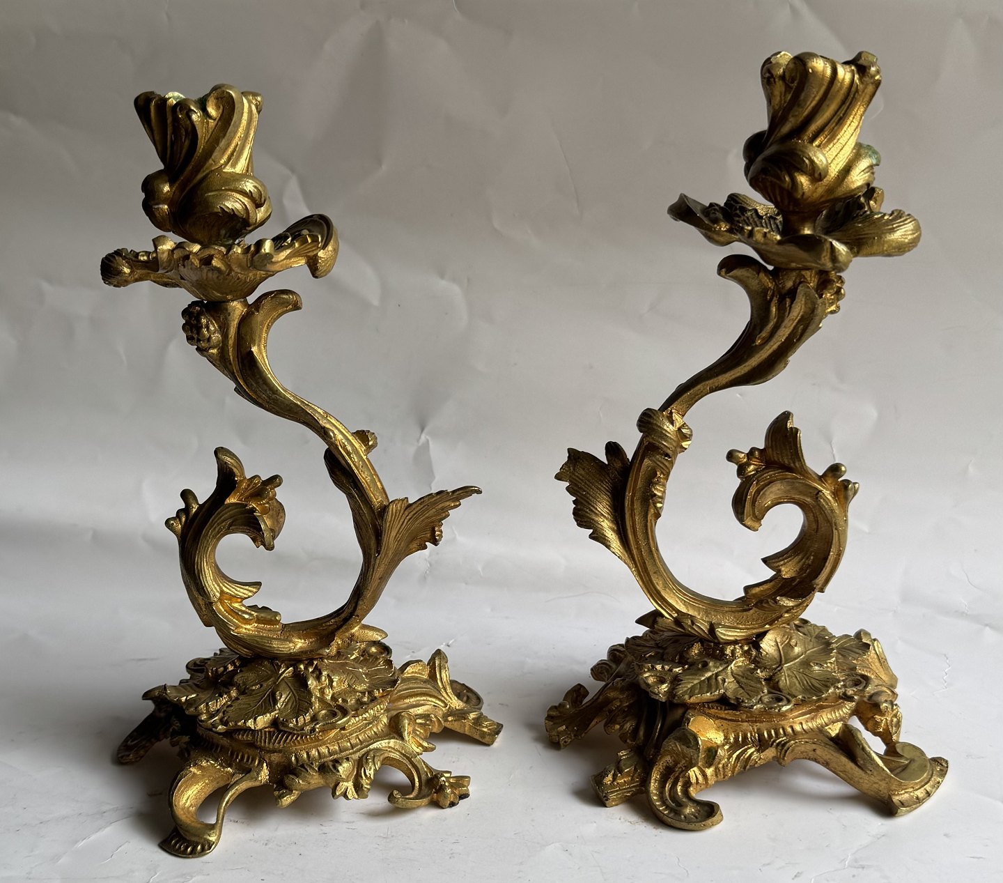Par rococo lueforgyldte lysestager i bronce fremstillet i Frankrig midt i 19. århundrede. Fremstår i god stand med ganske få brugsspor. H. 22,5 cm.
