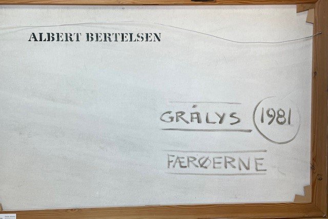 "Grålys Færøerne" flot oliemaleri i original stand, dog med krakeleringer i himlen, maleriet bør ses. Lys natur ramme.