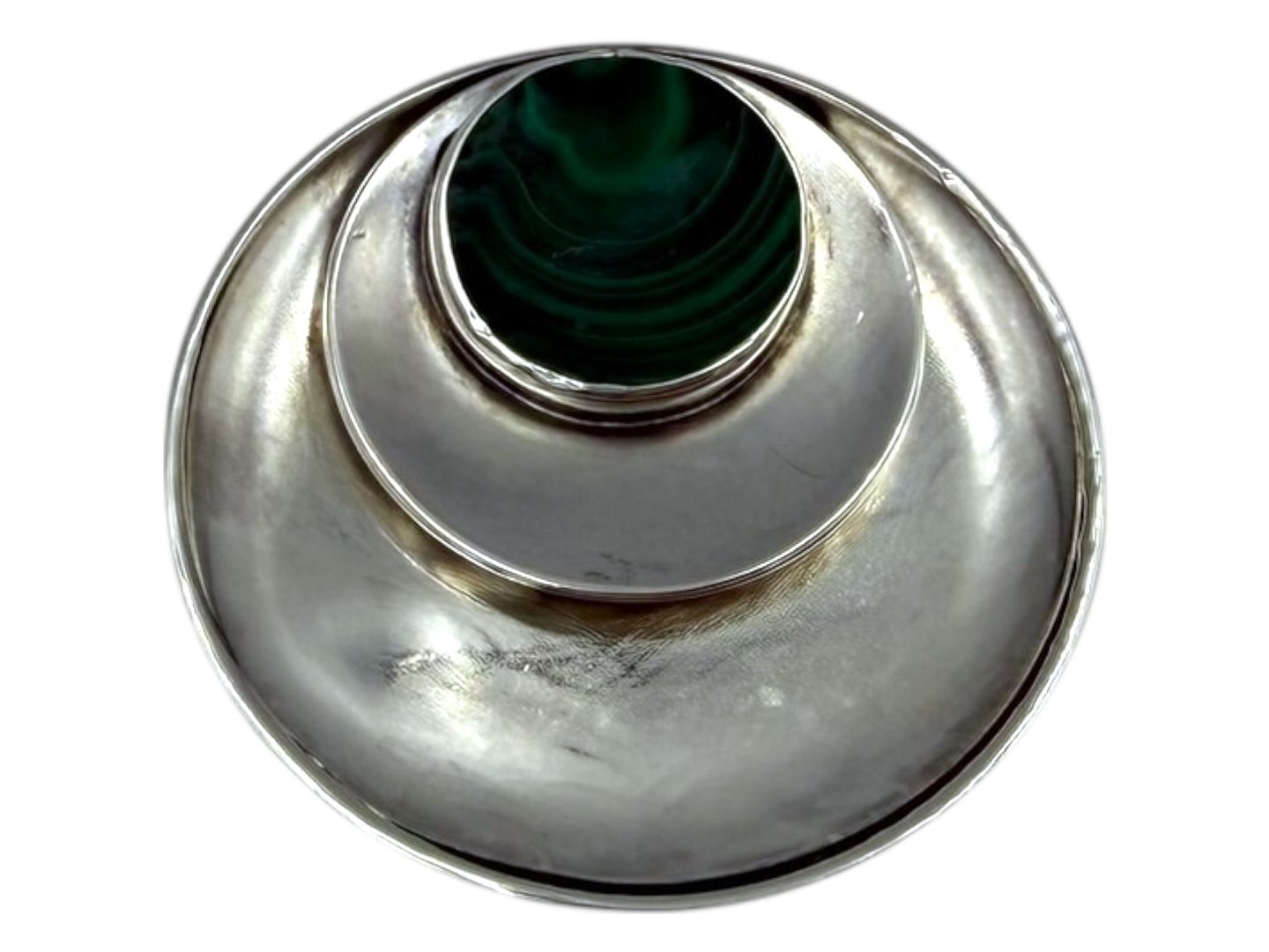 Just Andersen sterlingsølv moderne broche med grøn malakit sten,