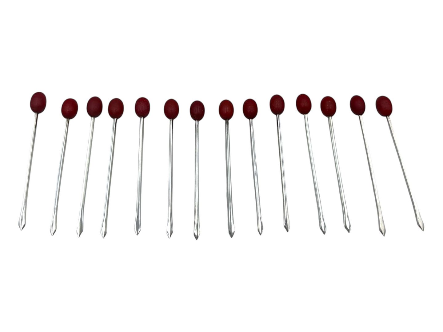 Sæt på 15 cocktailpinde / olivenpinde i sterling sølv med rød bakelit