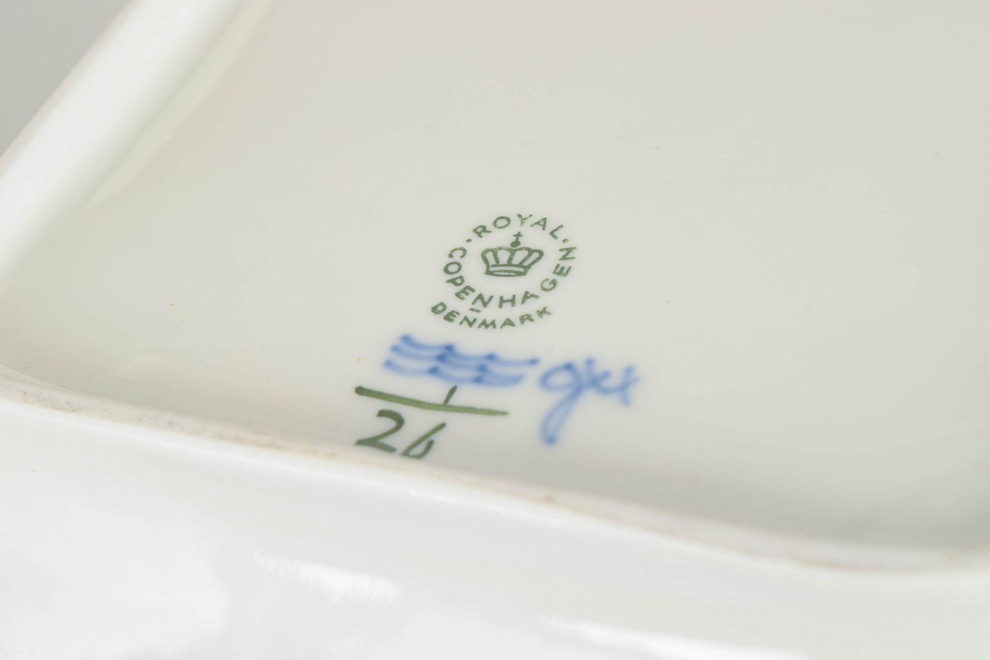 Royal Copenhagen blev grundlagt i 1775 og er en af Danmarks mest betydningsfulde porcelænsfabrikker. Fabrikken er særligt kendt for sine håndmalede dekorationer i underglasur blå, hvor Musselmalet Riflet er blandt de ældste og mest ikoniske stel. Hvert stykke er individuelt dekoreret af porcelænsmalere, hvilket gør hvert objekt unikt.