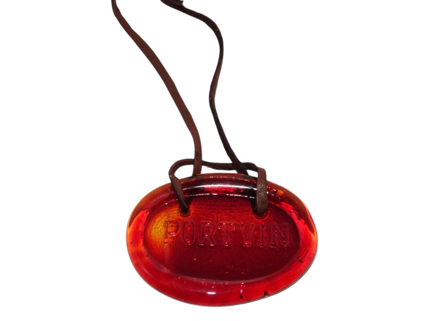 Holmegaard stort PORTVIN skilt i orangerødt glas fra 1970'erne.