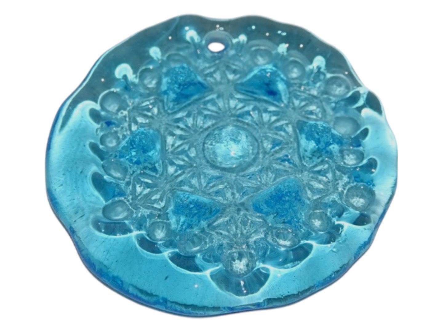 Glasværk fra Sverige, lille lyseblå solfanger fra 1970'erne eller 1980'erne.