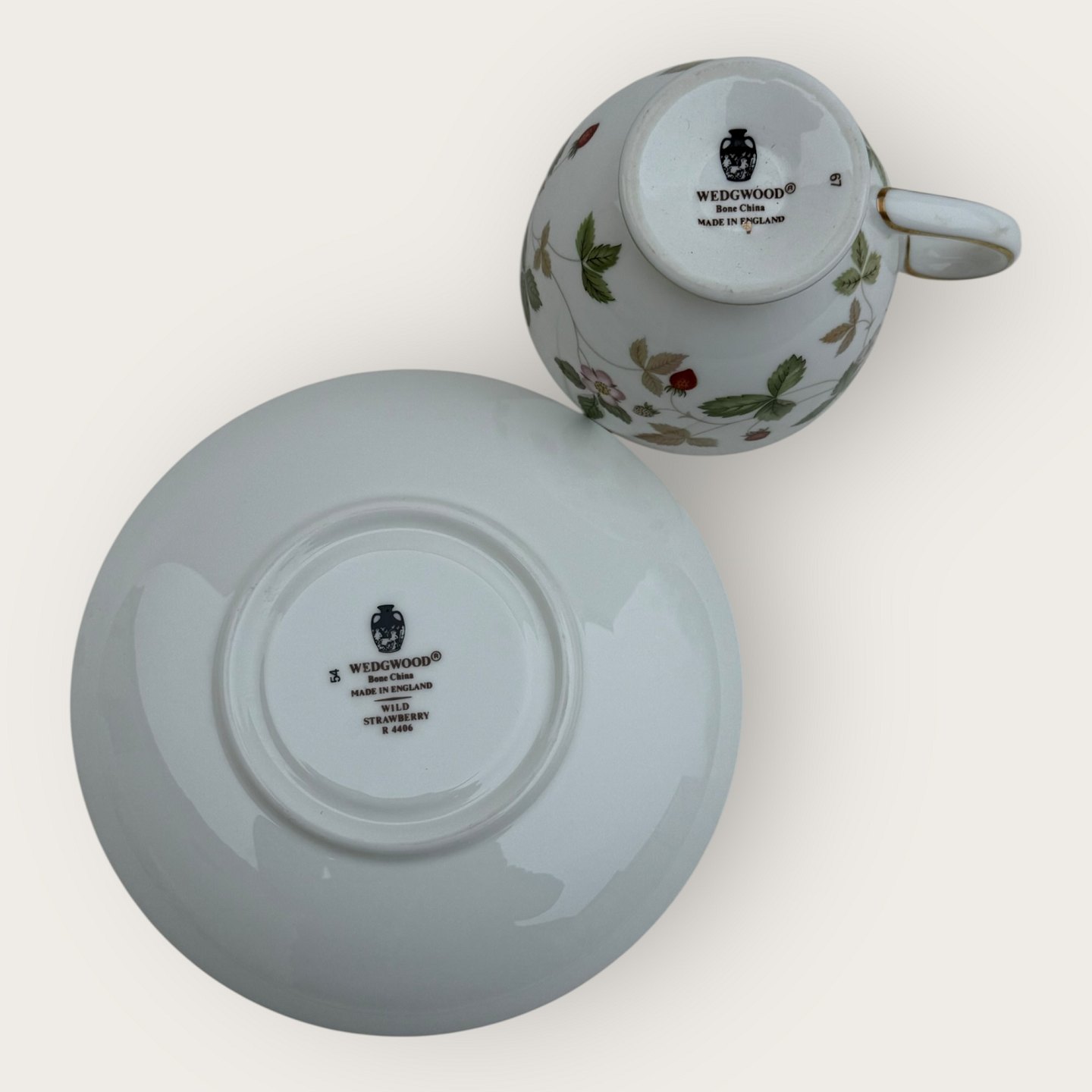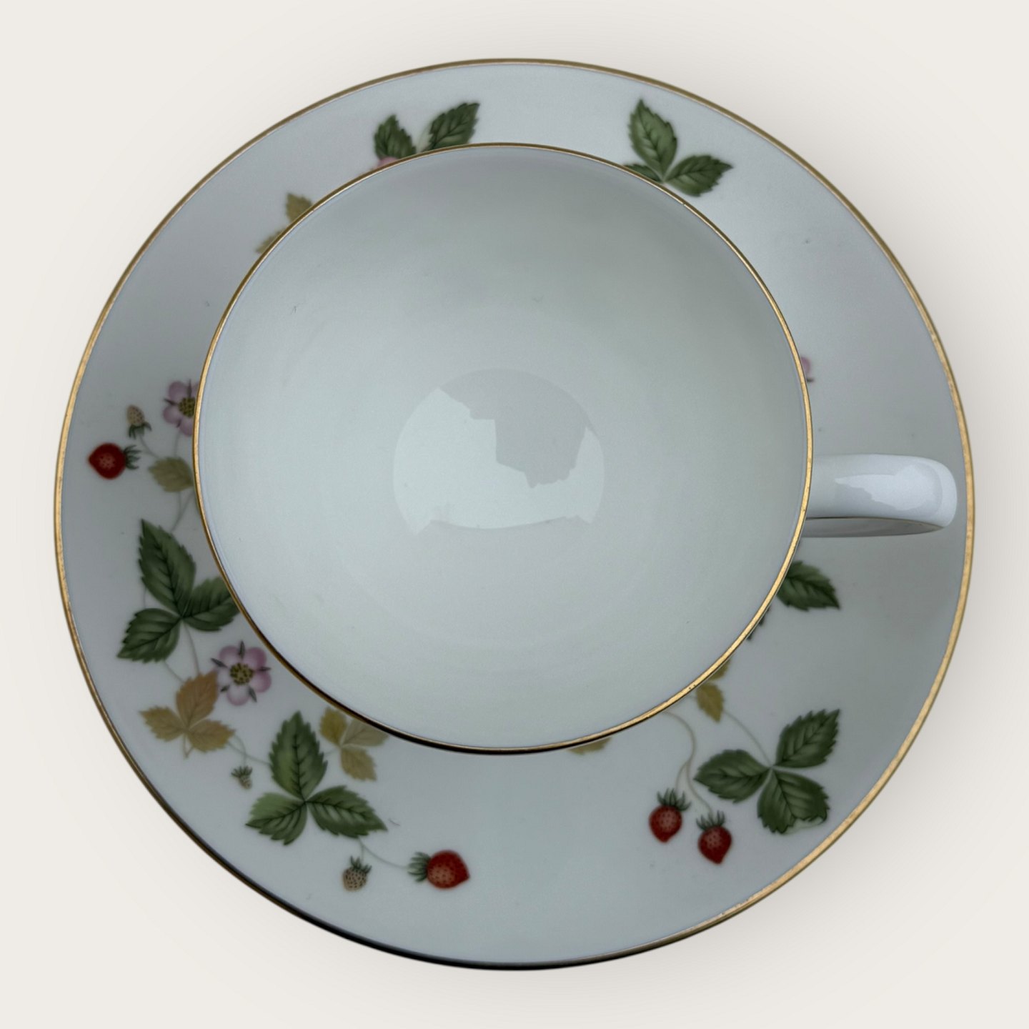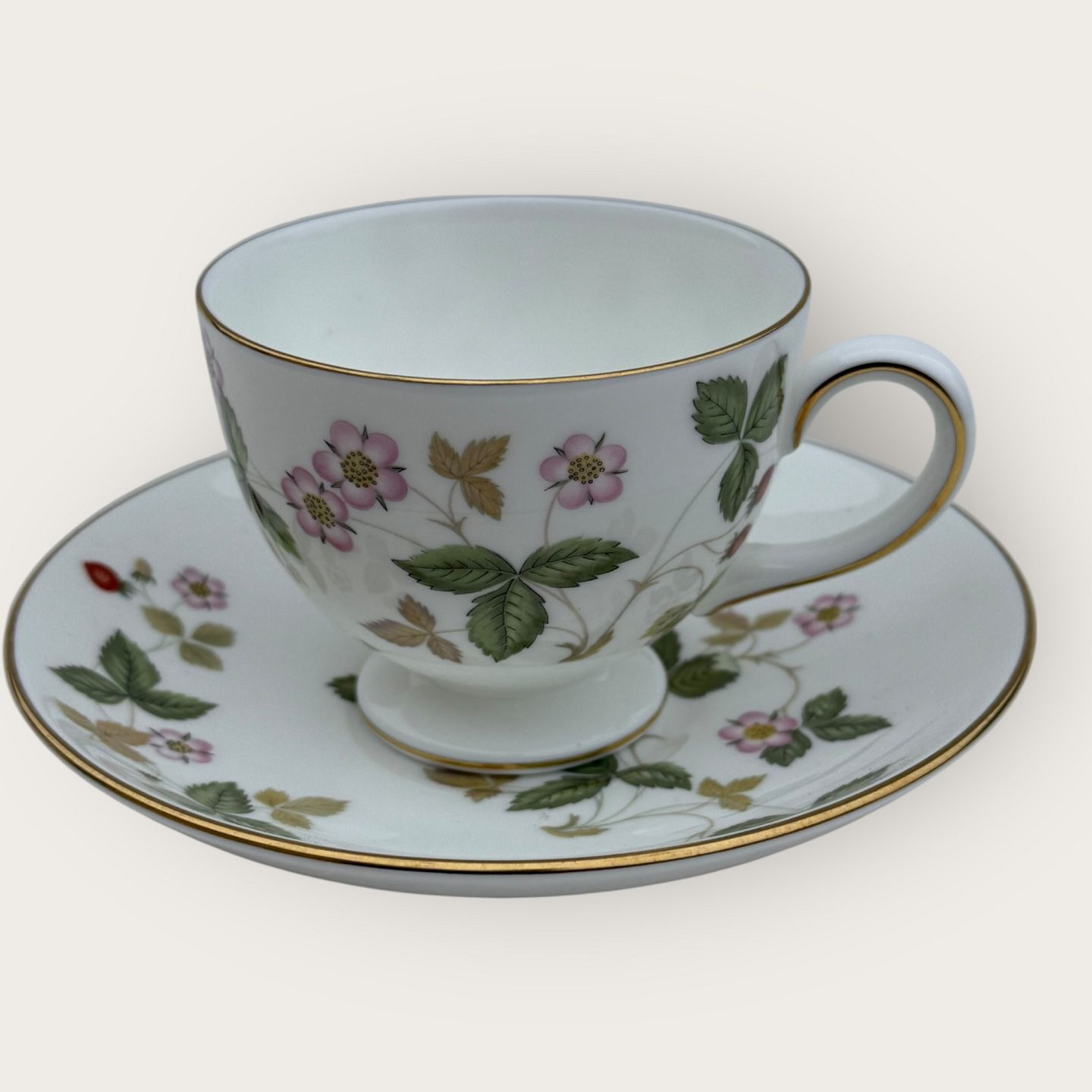 | Wedgwood, Wild strawberry, kop med underkop, Mål kop: højde 6,5cm diameter 8,2cm *Perfekt stand*
