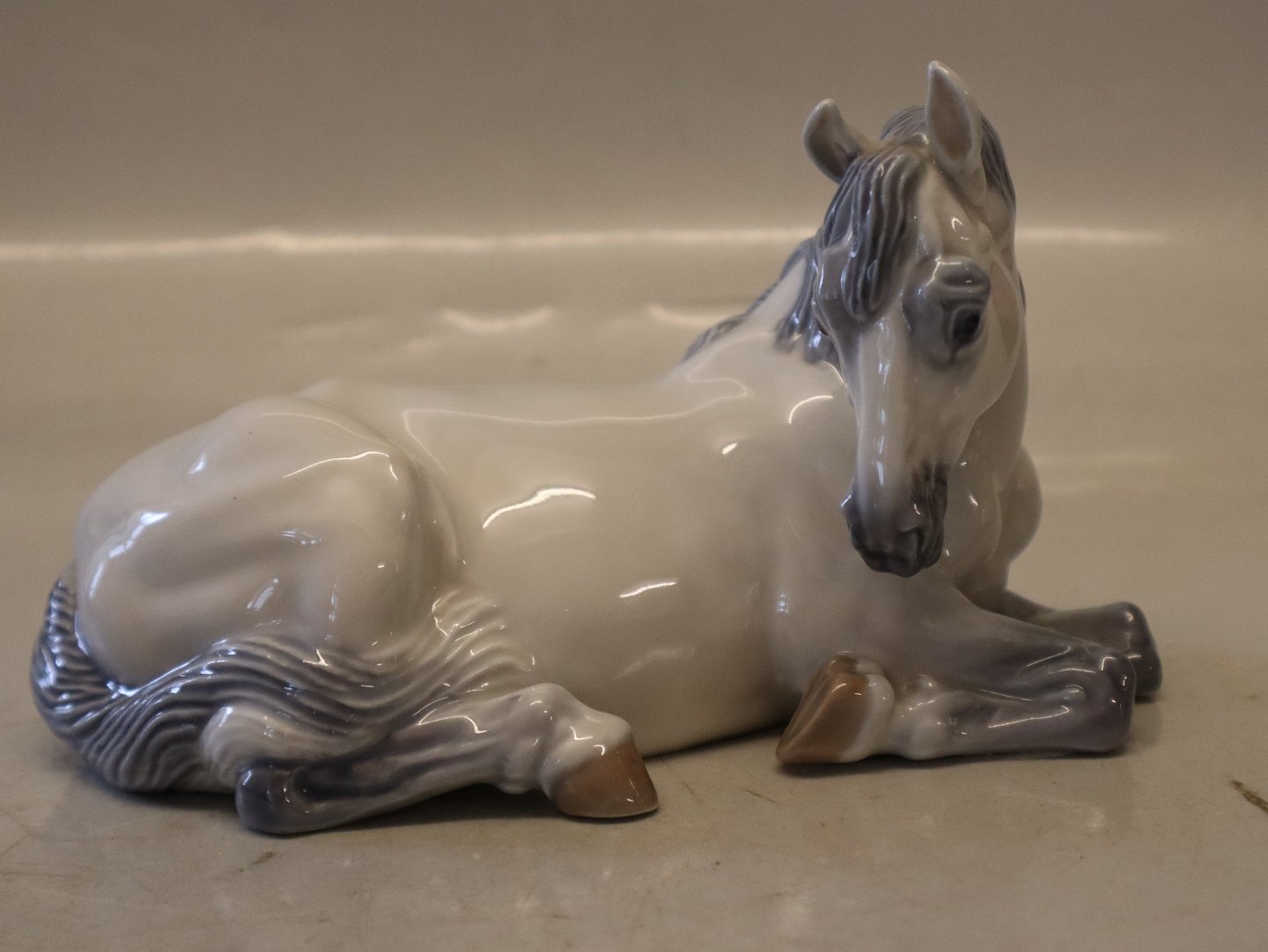 Kgl. hestefigur fra Royal Copenhagen 5690 liggende hoppe 10.5 x 18.5 cm 2. I hel og fin stand Jeanne Grut