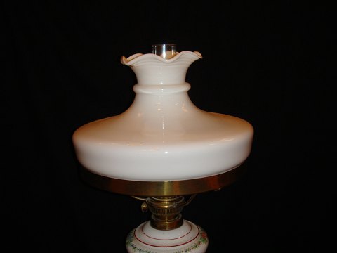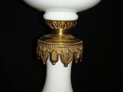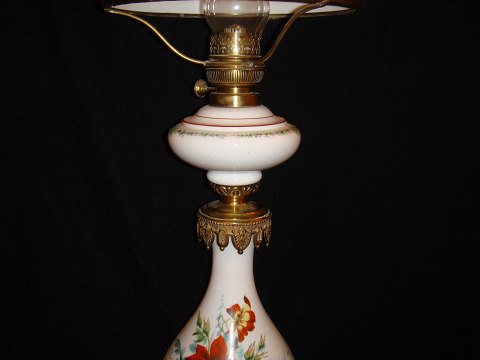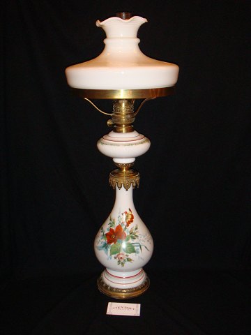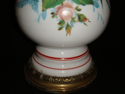 Petroleumslampei opalineglas med bemaling og Broncemonteringer