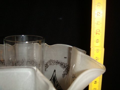Stamme i rødt glas og beholder i hvid glas