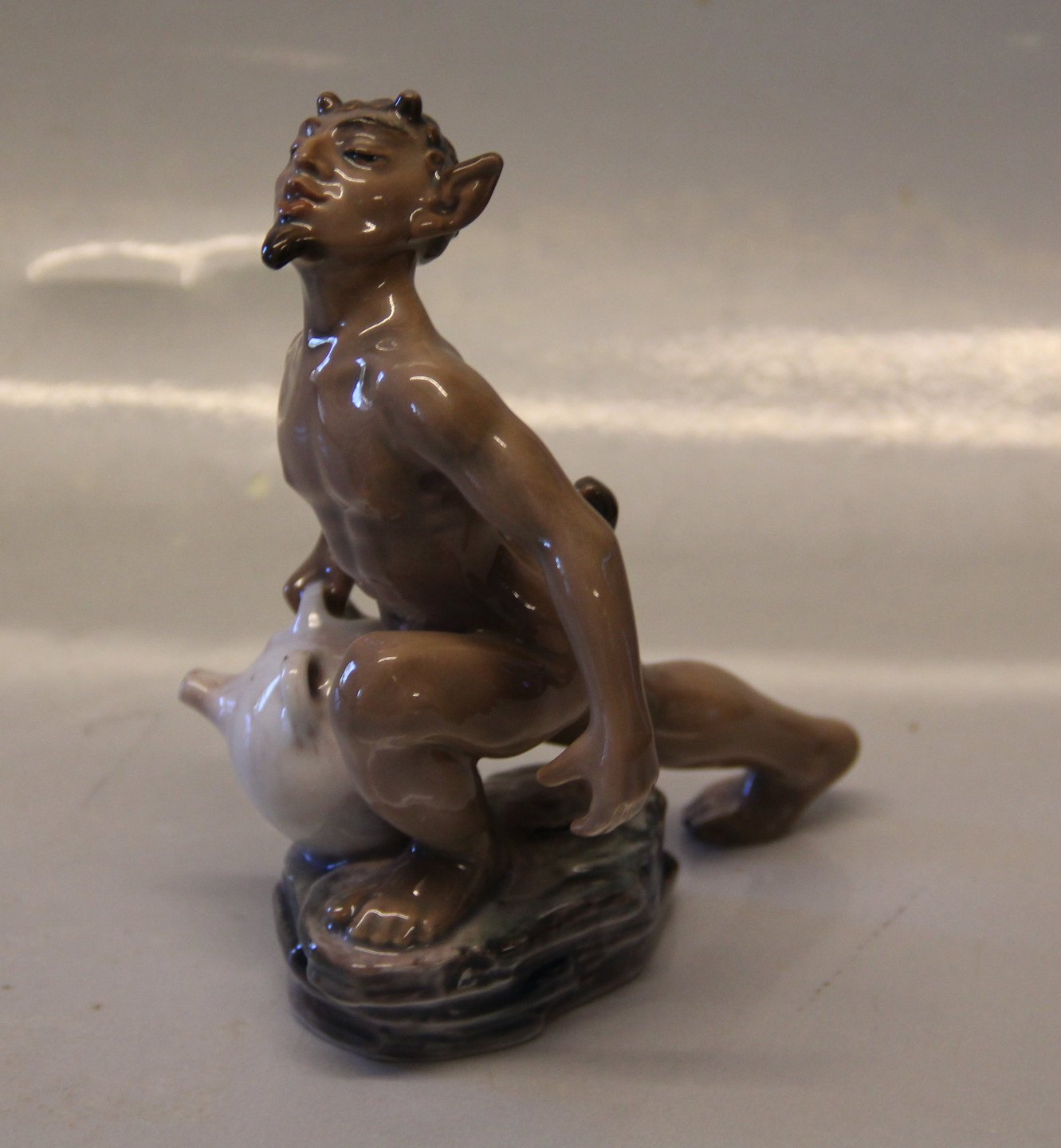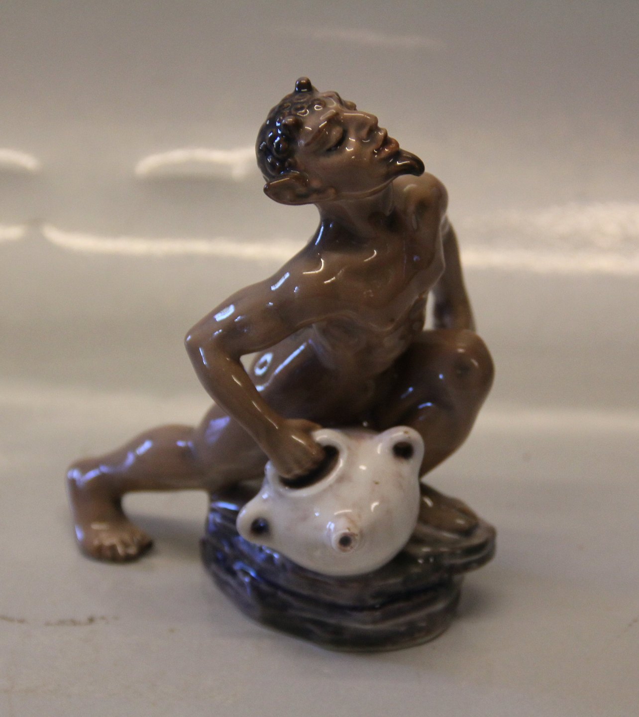 Dahl Jensen. 1336 Faun med vindunk (DJ) 13 cm Mærket med kongelig krone og DJ Copenhagen i hel og fin stand. Trold Bacchus PUK
