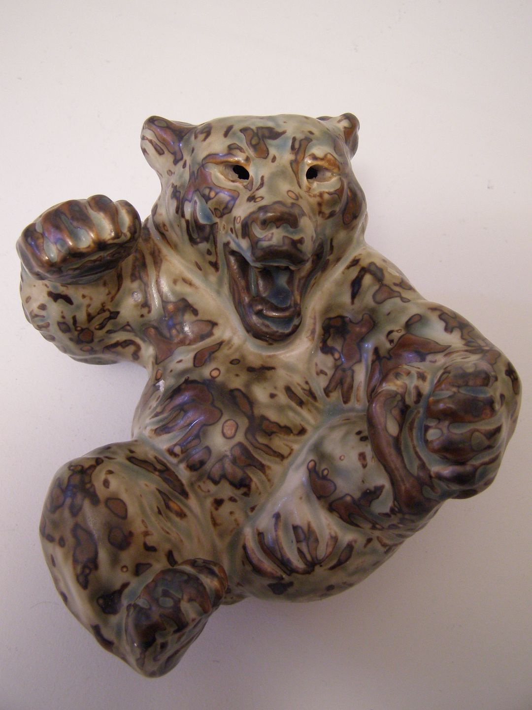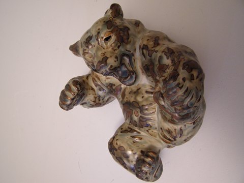 20271 Liggende bjørn 1.sort. Af Knud Kyhn h: 10 l: 16