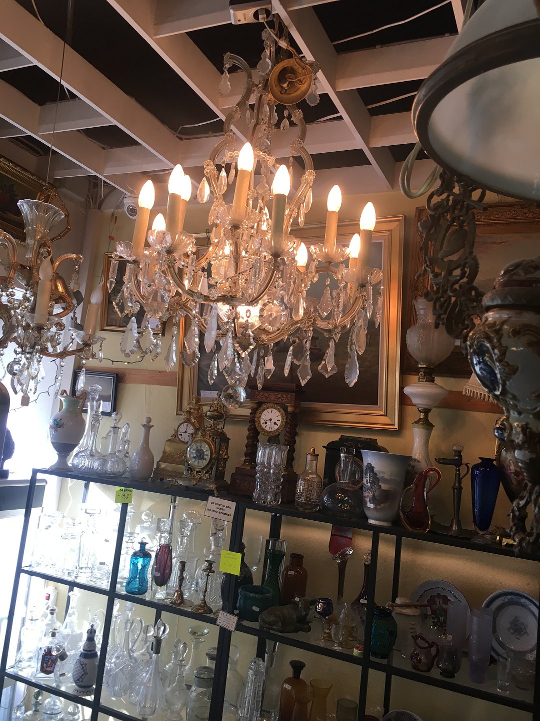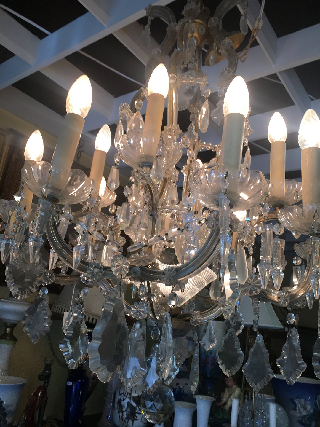 Maria Therese Stor prismekrone Anno:1900-1920 med 12 lysarme og lys i midten. dia: ø 80 cm højde: 128 cm.