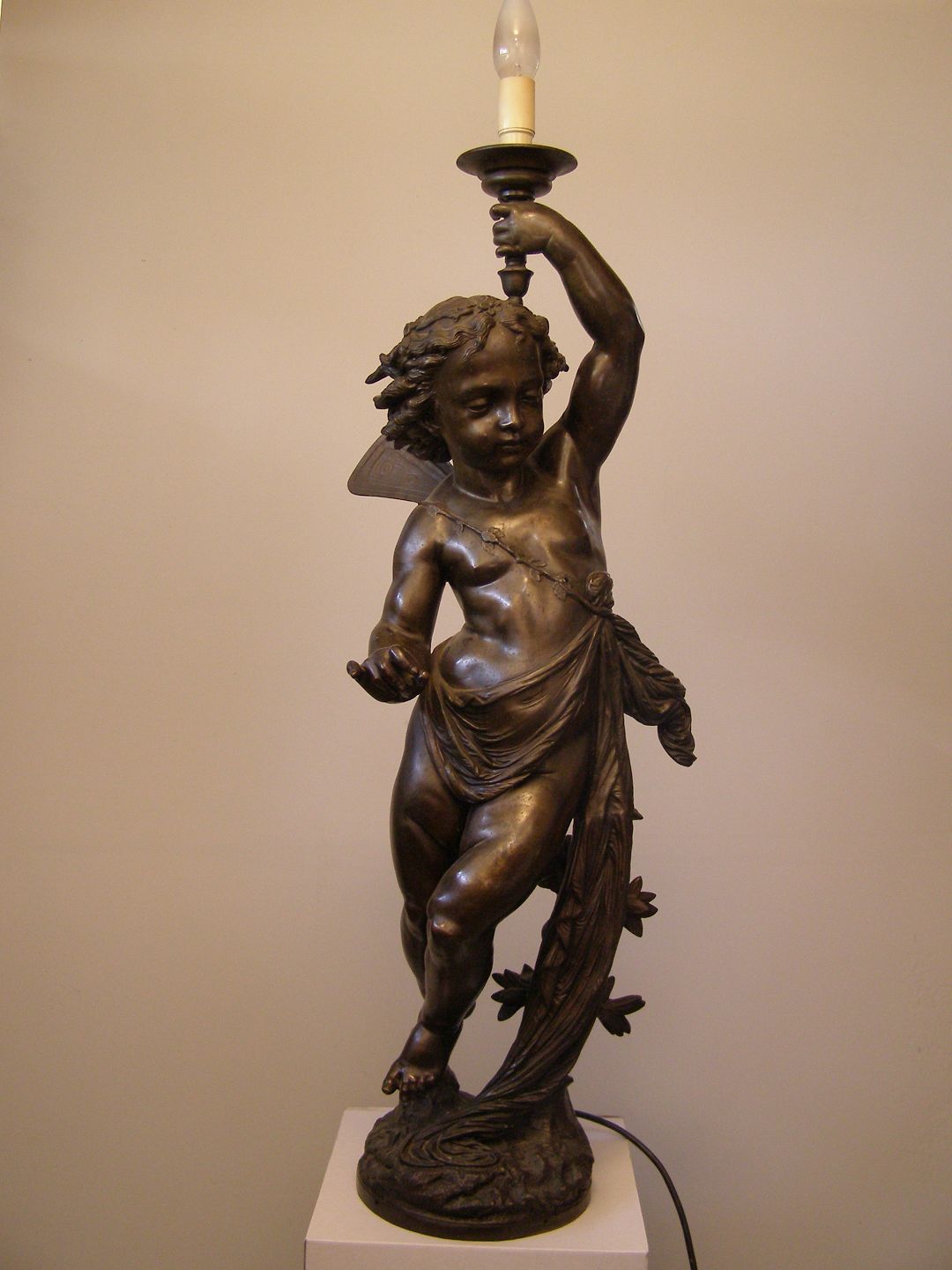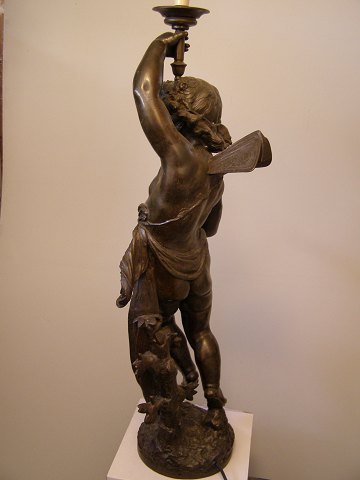 Lampe af metal, patineret. H:91cm.