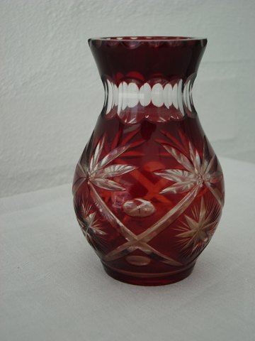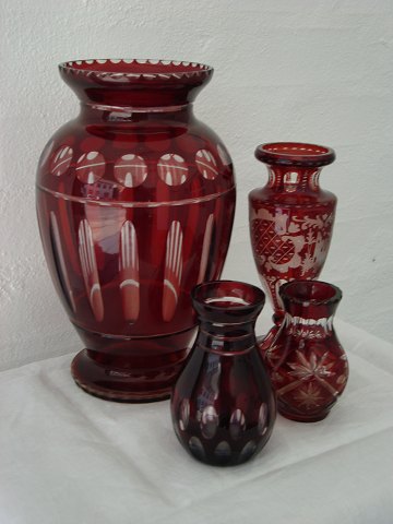 Böhmiske slebne krystal/glas vaser med rødt overfang.