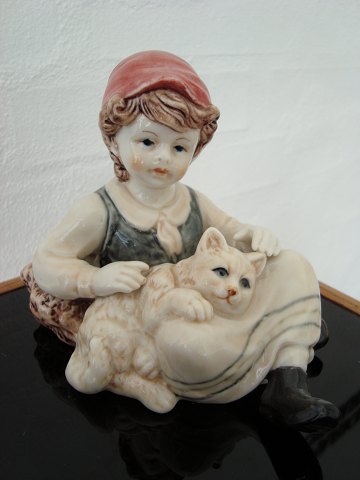 Gamle porcelænsfigurer, dreng med hund og pige med kat (solgt).