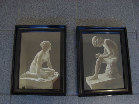 2 indrammede svenske bruntryk efter marmorskulpturer.