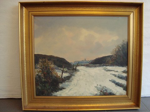 Maleri - N.K. Nielsen - Vinterlandskab.