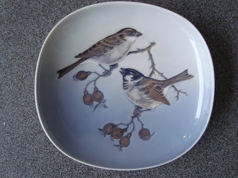 Kongelig skål dekoreret med spurve på grene.