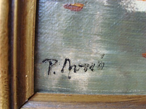 Maleri af P. Avnø - "Vandløb gennem skov"