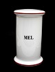 Dekorativ , gammel fransk fajance senneps krukke fra "Dijon" i cremefarvet ...