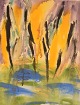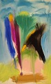 Ivy Lysdal, b 1937. Danish ceramist and painter. Gouache and oil crayon on ...