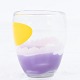Glasvase m. dekorationer i lilla og gule farver.