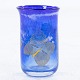Cylinderformet glasvase i blå farver m. sommerfuglemotiv. ...