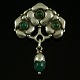 Danish Art Nouveau Silver Brooch with Green Agate - Grann & Laglye