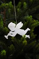 Gammelt juletræspynt i form af små engle glansbilleder og sølvtråd.