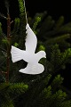 juletræspynt i form af lille fredsdue i perlemors hvid plast fra 50érne. . .