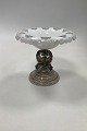 Antique Glass pedistal bowl with silver bottom in clear and white glass