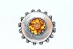 Sølv broche med orange-gul sten
