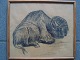 Tuschtegning af Sven Schou - Hest.