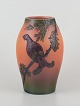 Ipsens Enke, keramikvase med egern, glasur i orange og grønne toner.
