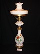 Petroleumslampei opalineglas med bemaling og Broncemonteringer