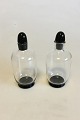 Orrefors Simon Gate Two small Bottles of glass with black base and cork of ...
